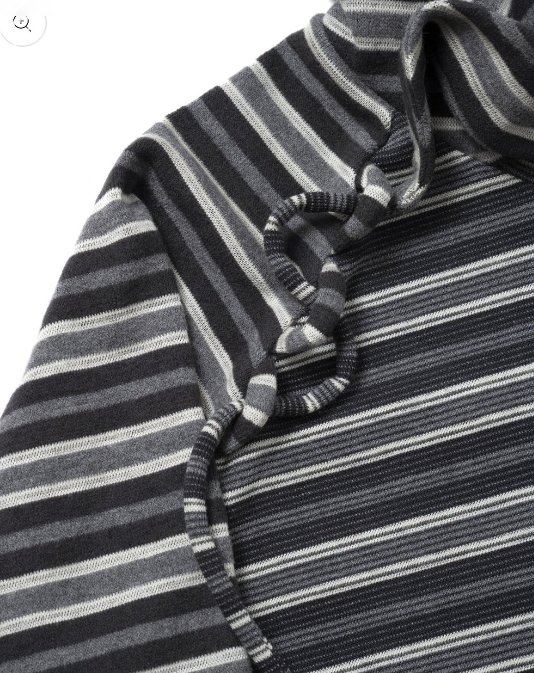 程よくタイトなシルエットと肌触りのいいボーダー生地を使用。視覚的効果を利用した生地の両面使いが魅力。