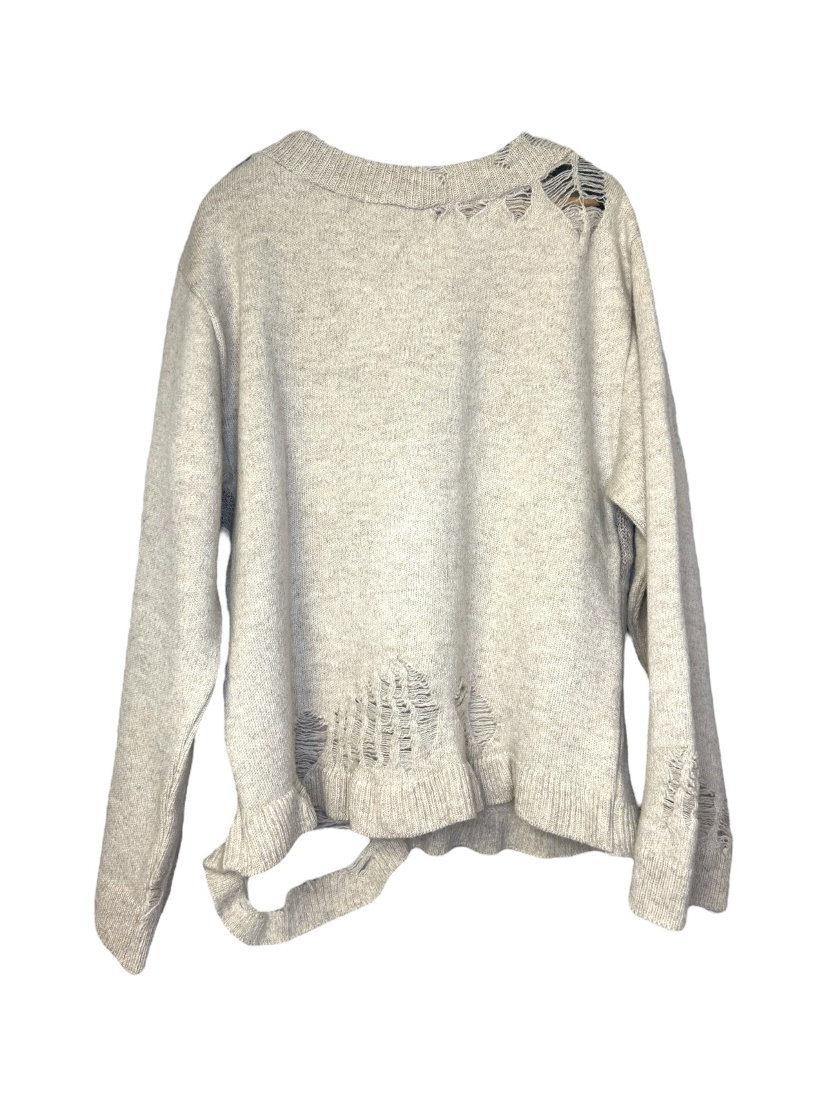 UKトラッドで使われる様な起毛のウール糸を度詰めで編みながら、機械にて横糸を残すクラッシュを施しました。