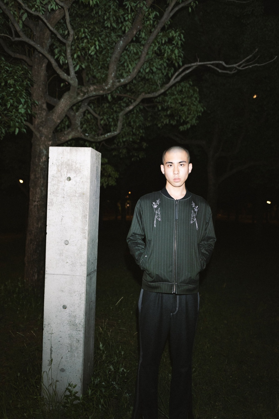 胸元には、鹿角紋(かづの)と楓の家紋をミックスした刺繍を施し、自然との調和を表現した。