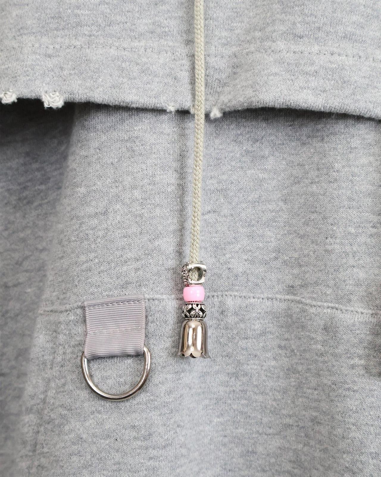 フードのドローコードにはメタリックなスペーサービーズをあしらい、ディテールにもこだわっています。