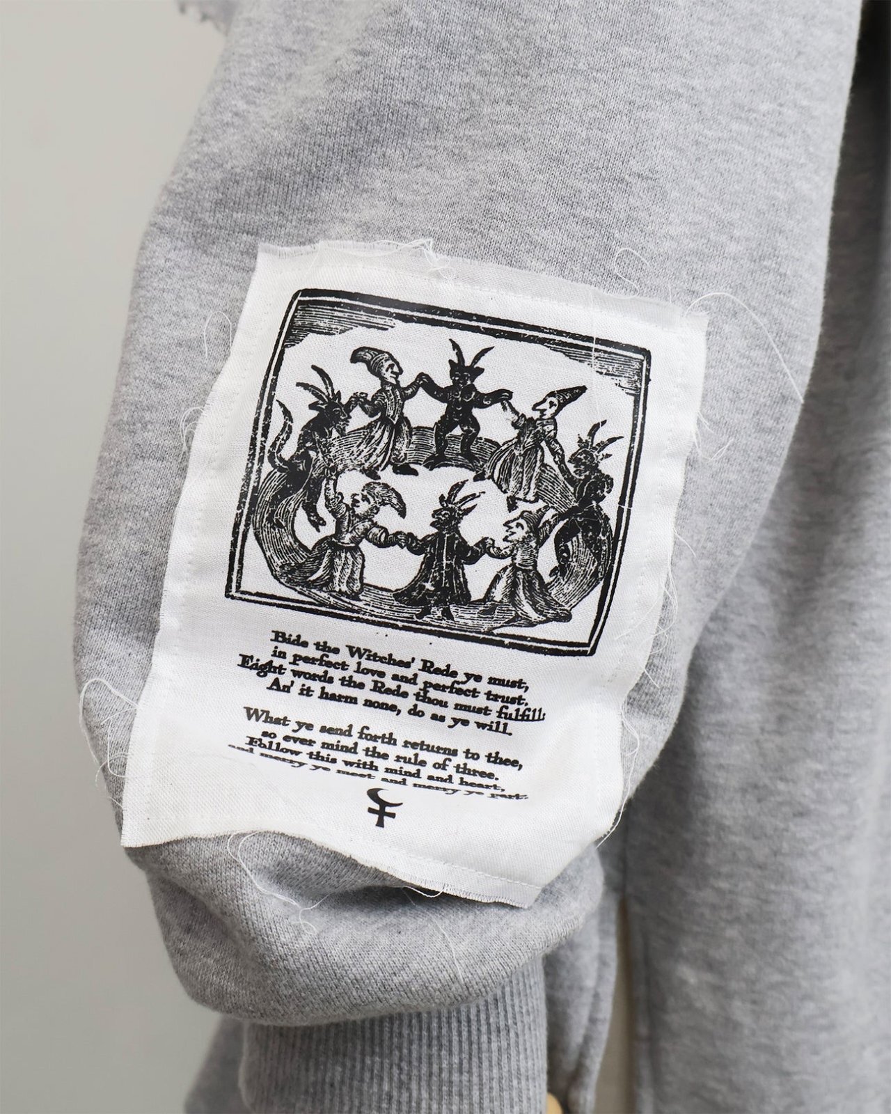 クラッシュ加工とグラフィカルな刺繍・プリントが際立つ、ブランドらしいエッジと物語性を融合した一着です。