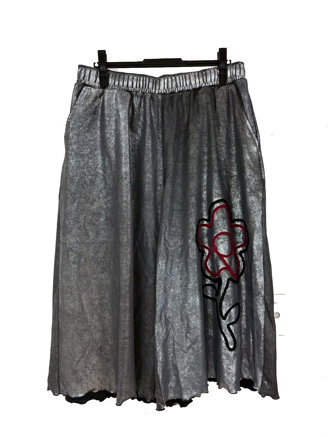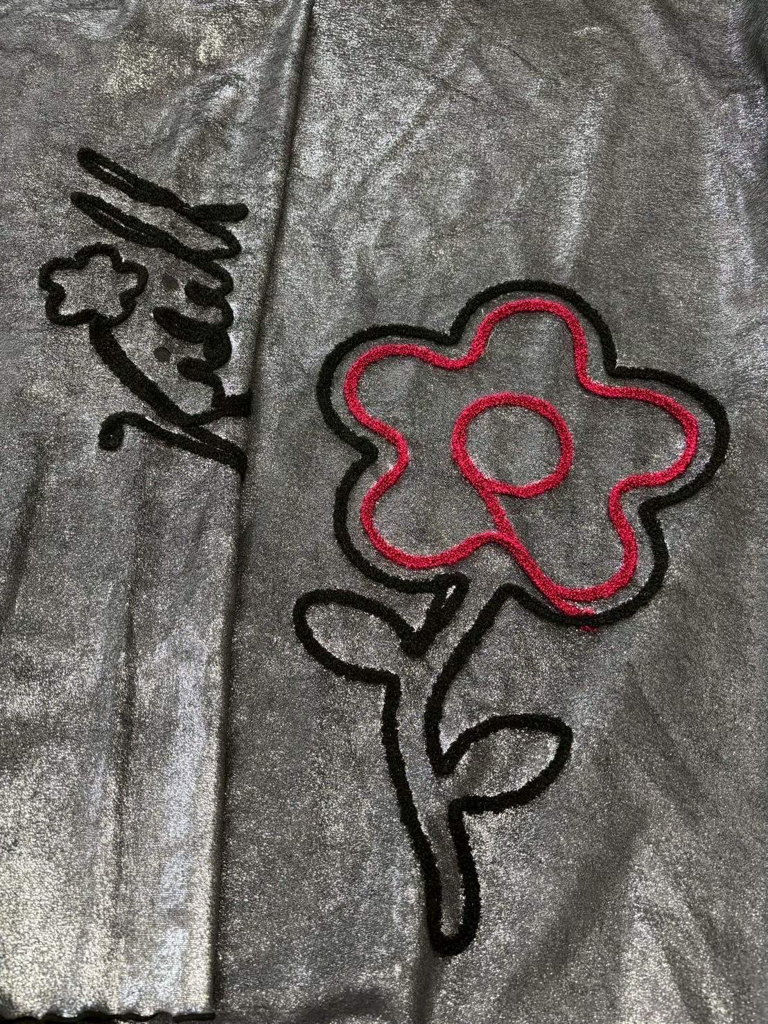 KIDILL 26SS KL1082 FLOWER CORD EMBROIDERY VELOUR SHORT PANTS BIOSTONE WASHED BLACK×SILVER FOIL