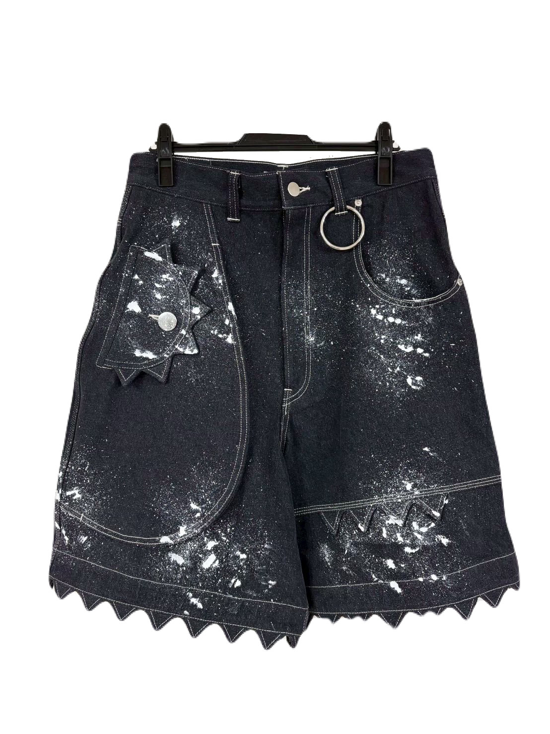 KL1053 MONSTER DENIM SHORT PANTS BIOSTONE WASHED STAIN DISTRESSED DENIM