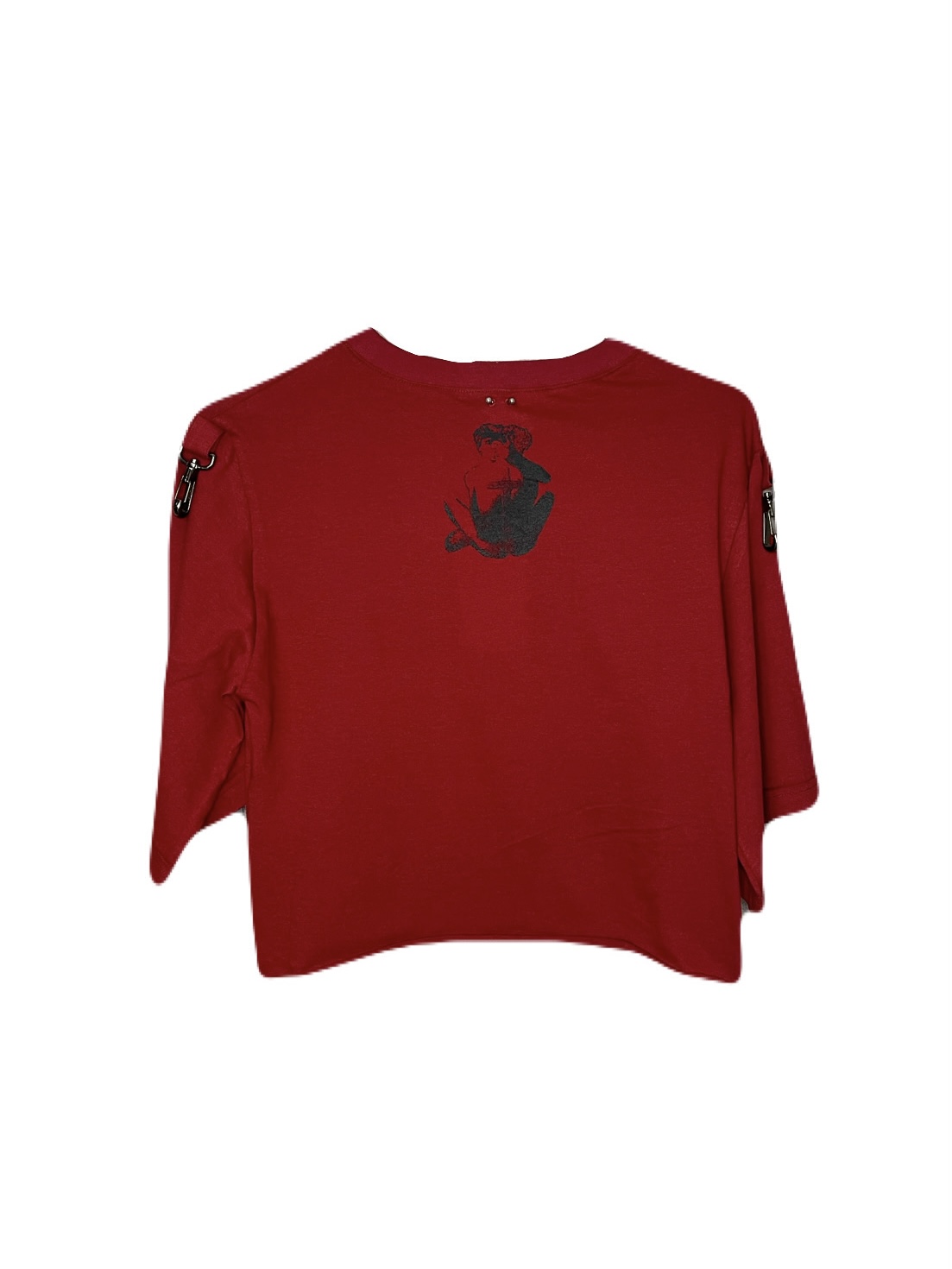 肩についたナスカンでスタイリングを変化させられるアイテム。着心地の良い薄手のコットン生地に、タイトなサイズ感で春夏におすすめです。