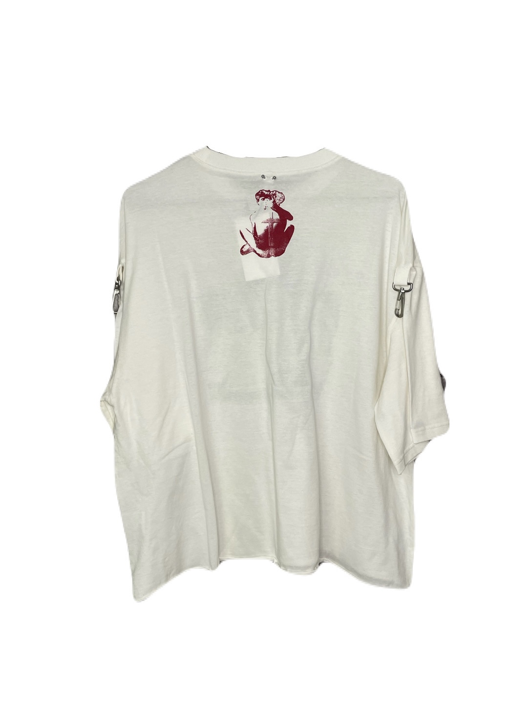 肩についたナスカンでスタイリングを変化させられるアイテム。着心地の良い薄手のコットン生地に、ユニセックスなサイズ感でラフに着用いただける、春夏におすすめのアイテムです。