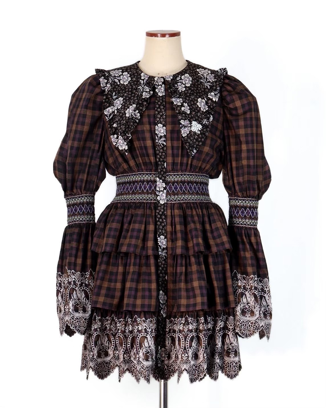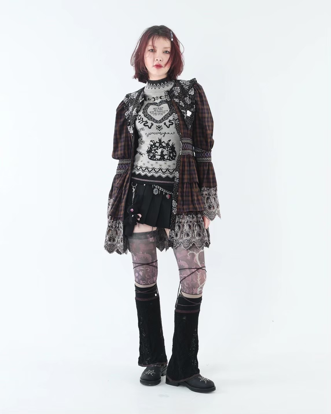 rurumu: 25AW burn the rabbit lace check mini dress