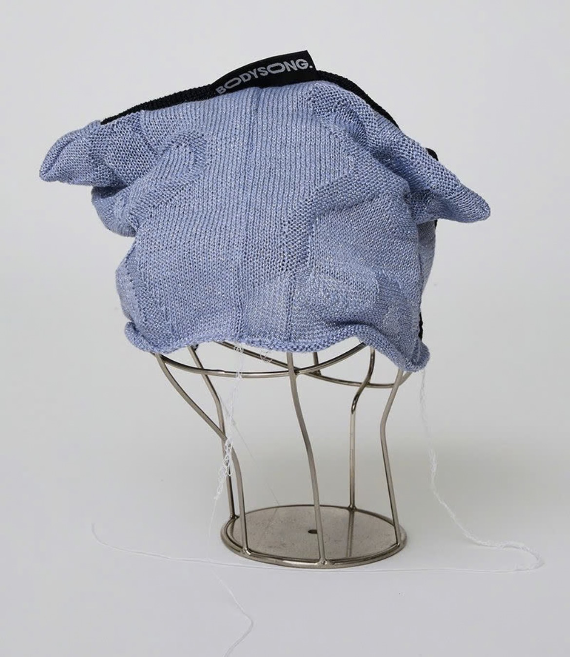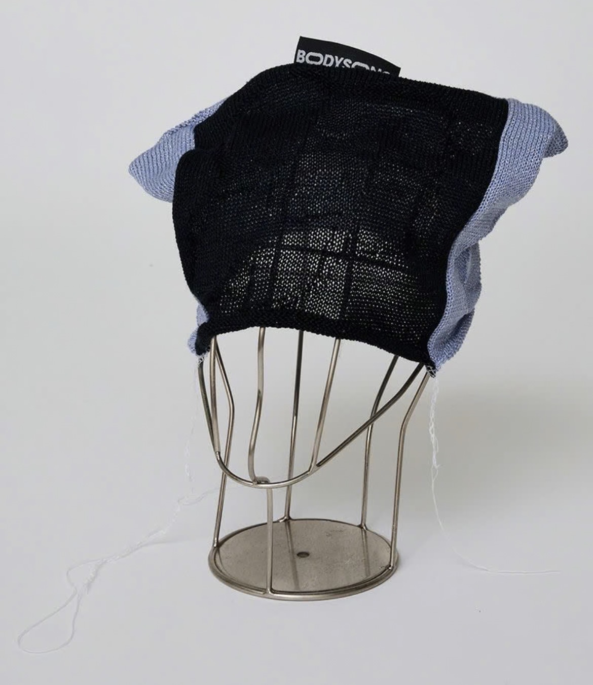 バイカラーに編地を組み合わせることで、奥行きのある表情と、独特なシルエットを生み出しています。