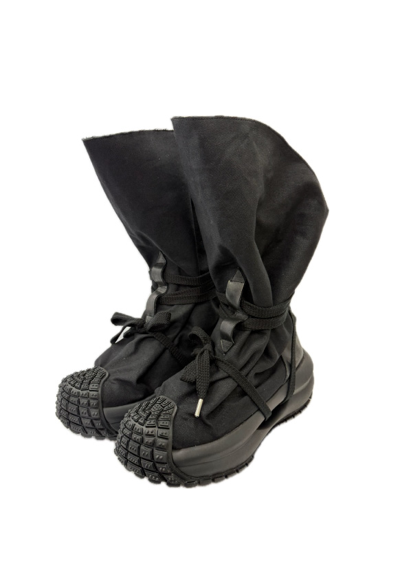 袋に足入れして、シューレースでラップしたイメージのサックブーツ、
