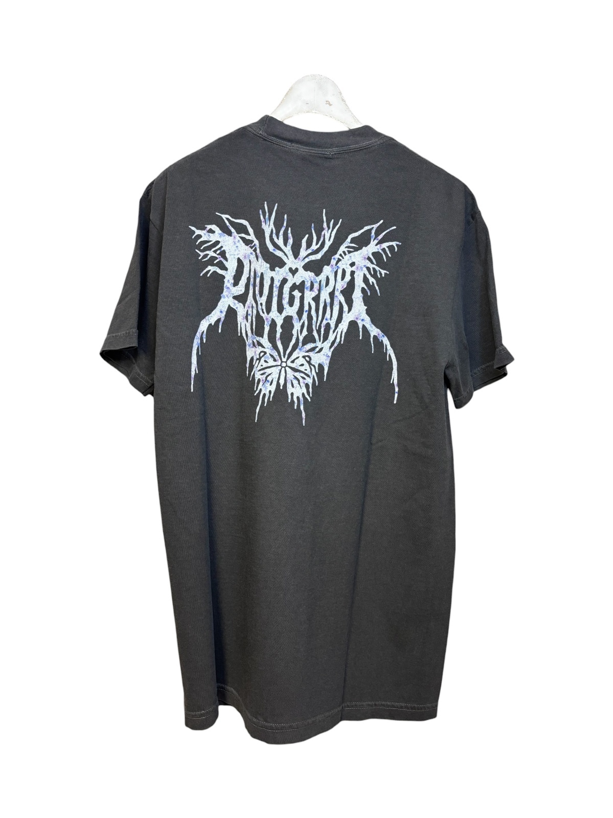 バックプリントには、「Riot Grrrl」をメタルロゴ風にアレンジしたグラフィックをオン。